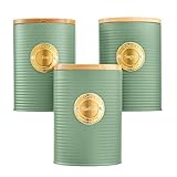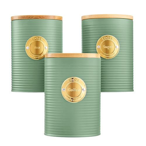 Out of stockCooks Professional 3pc Ribbed Tea Coffee & Sugar Storage Canisters with Gold Label in Green Green