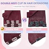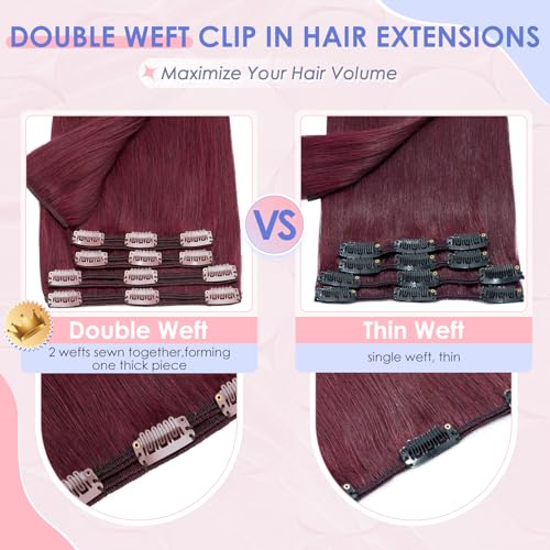 Elailite Clip in Hair Extension Real Human Remy Hair Black Thick Double Weft 8 Pieces Full Head Straight - #99J Wine Red - 16 Inch 130g