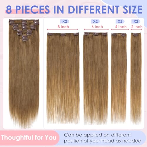 Elailite Clip in Hair Extensions Real Human Hair Remy Natural Hair - 8 Pieces Standard Weft Full Head Straight - #6 Light Brown - 22 Inch (110 g)