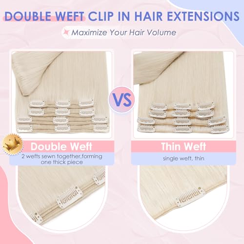 Elailite Blonde Hair Extensions Real Human Hair Clip in Thick Double Weft - 8 Pieces Remy Hair Straight Full Head #70 Bleach White - 10 Inch (110 g)