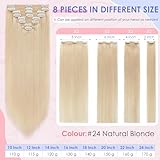 Elailite Double Weft Hair Extensions Real Human Hair Blonde Clip in Thick Remy Natural Hair - 8 Pieces Full Head Straight - #24 Natural Blonde - 12 Inch 115g
