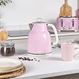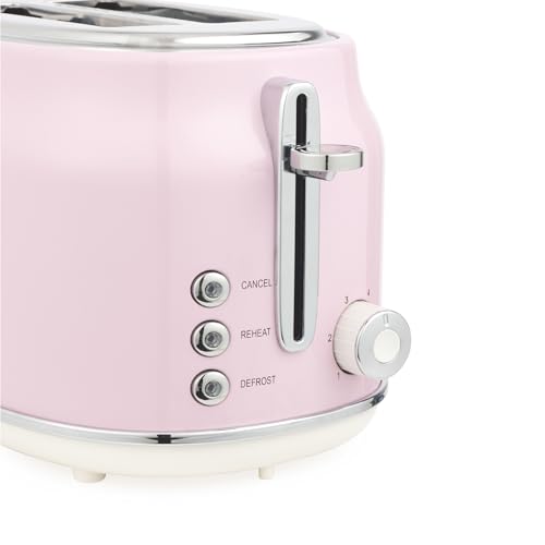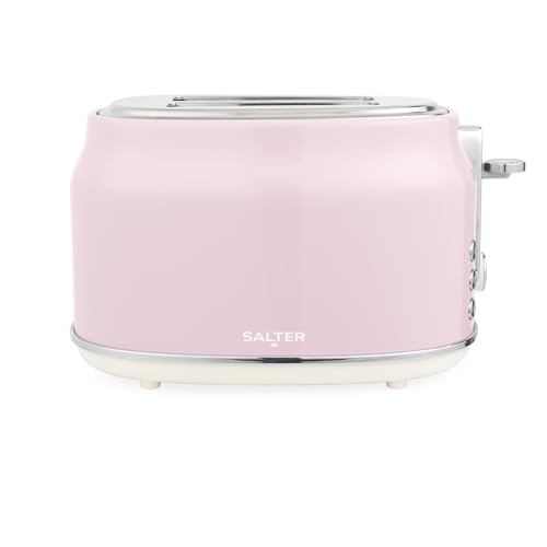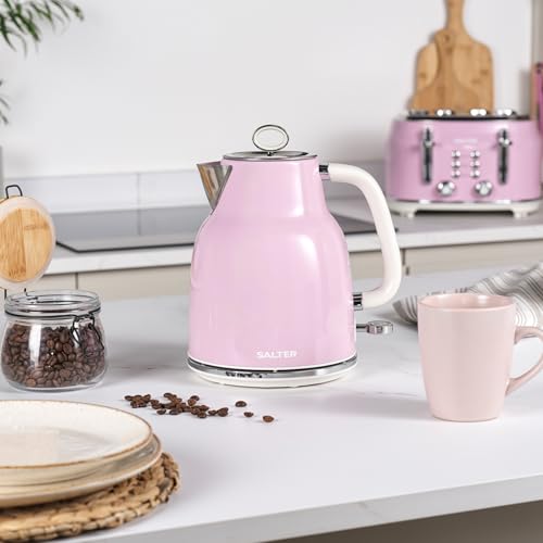 Salter Retro Pink Kettle & Toaster Set – 1.7L 3KW Rapid Boil Cordless Kettle with Boil Dry Protection & Auto Shut-Off, 815W 2-Slice Wide Slot Toaster with 6 Browning Levels & Defrost/Reheat/Cancel