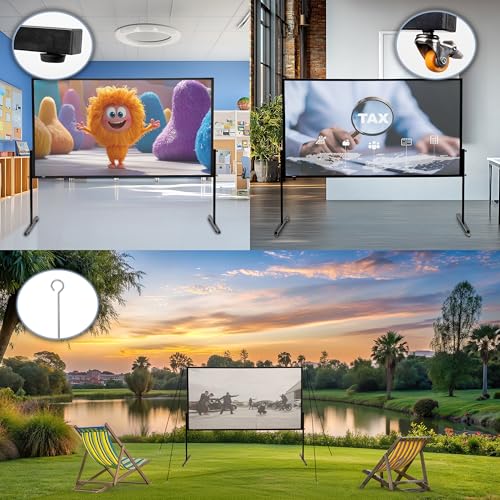 Duronic Projector Screen SFPS80 BUNDLE 80” Projection Screens with Accessories Kit 16:9 Wall Mountable Projector Screen with Tripod Stand Hook Screw Portable Movie Screens for Home Cinema Business