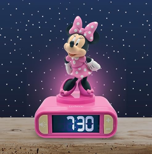 LEXIBOOK, Disney Minnie, Nightlight alarm clock, Sounds and Melodies, LCD Backlit screen, Luminous, Snooze, Pink, RL800MNLXB