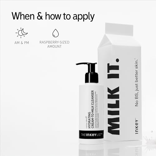 The INKEY List Hydrating Cream-to-Milk Cleanser 180ml, 5% Rice Milk & Hyaluronic Acid, Gentle Cleaning Formula, Non-Stripping, Non-Drying, Non-Irriating, Hydrates & Dissolves Makeup, Vegan Friendly