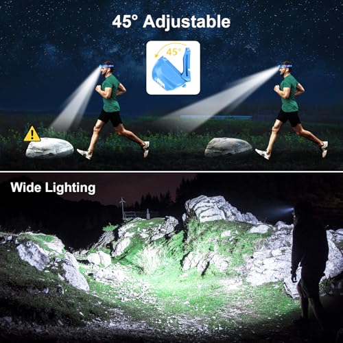 Gritin LED Head Torch, [2 Pack] Super Bright Headlamp Headlight with 3 Modes, Waterproof, Battery Powered LED Lightweight for Camping, Outdoors, Emergency [6 AAA Batteries Included]-Royal Blue