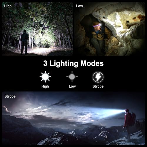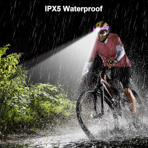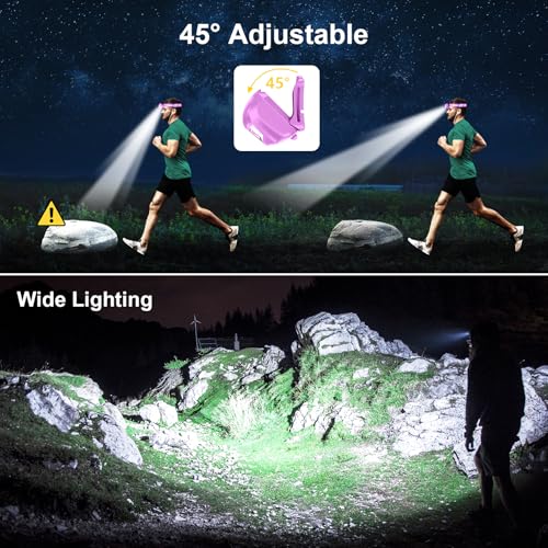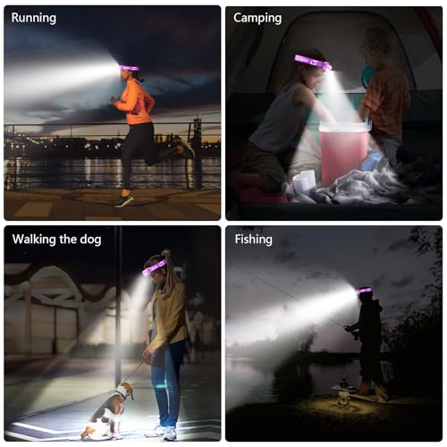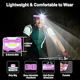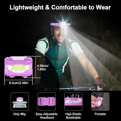 Gritin LED Head Torch, [2 Pack] Super Bright Headlamp Headlight with 3 Modes, Waterproof, Battery Powered LED Lightweight for Camping, Outdoors, Emergency [6 AAA Batteries Included]-Lavender