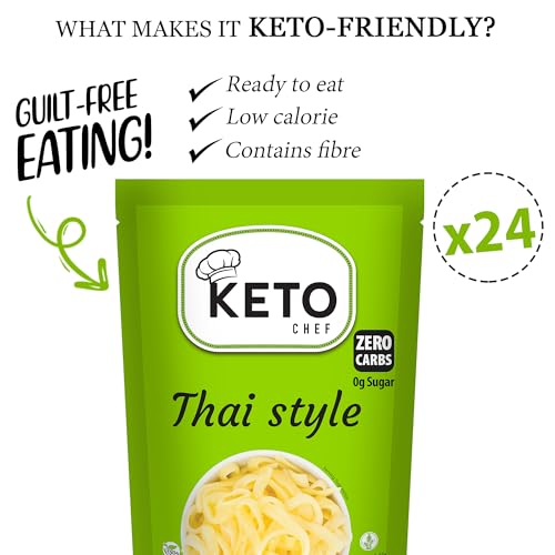 Keto Chef Konjac Thai Style Noodles (Pack of 24 x 270g) Instant Oats Fibre Shirataki Noodles, Low Carb, Low Calorie, Gluten & Sugar Free, Vegan, Ready to Eat Alternative, Paleo Diet Friendly