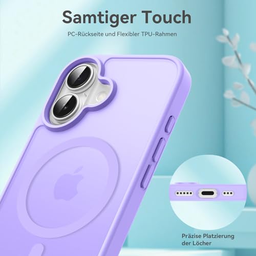 Natiiozie Magnetic Case Compatible with iPhone 16 [Compatible with MagSafe] Military Grade Shockproof Phone Case Anti-Scratch Slim Translucent Matte Case for iPhone 16 - Light Purple