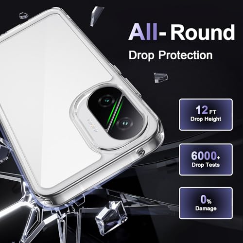 Liisooka Case for Xiaomi Poco F7 5G, Military Grade Drop Protection Phone Case, Yellowing Resistant, Anti-Scratch Hard PC Back, Shockproof Hard Ultra-Thin Protective Cover, Clear