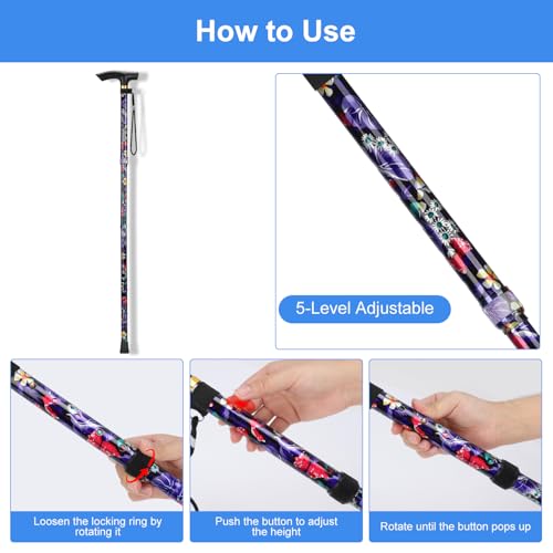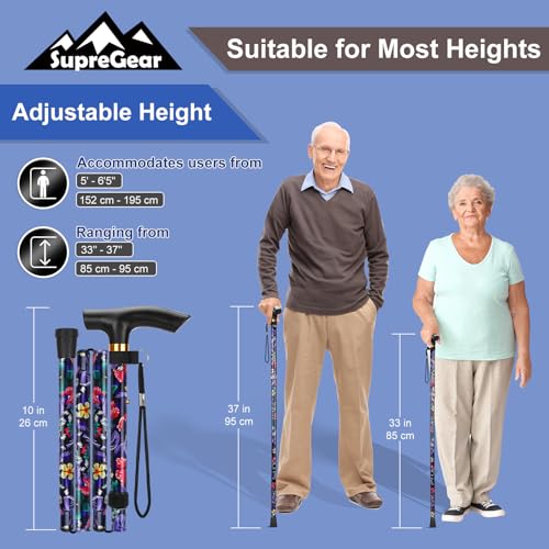 supregear Walking Stick - Adjustable Folding Walking Sticks for Women and Men - Lightweight Portable Collapsible Balancing Aid - Foldable Travel Cane for Ladies Elderly Adults, Black Large Floral
