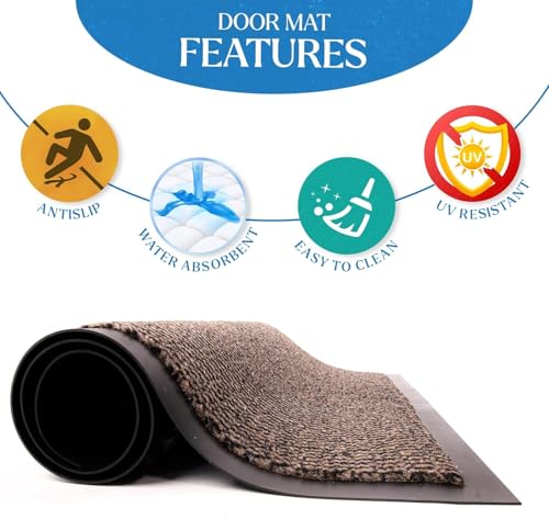 FB FunkyBuys Washable Dirt Trapper Door Mats Indoor & Outdoor, Heavy Duty Non Slip Doormats, Rubber Backed Floor Mat, Super Absorbent Front Door Mat, Entrance Rug (Brown-waved, 90cm x 120cm)