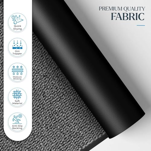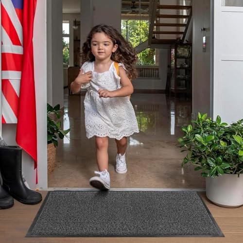 FB FunkyBuys Washable Dirt Trapper Door Mats Indoor & Outdoor, Heavy Duty Non Slip Doormats, Rubber Backed Floor Mat, Super Absorbent Front Door Mat, Entrance Rug (Grey-waved, 90cm x 120cm)