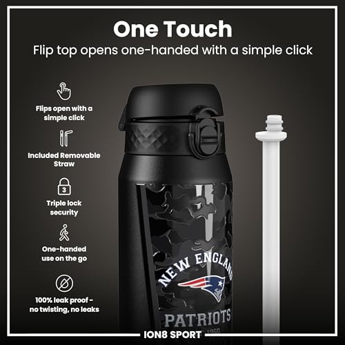 NFL x ION8 Insulated Steel Water Bottle, NFL Patriots, 750ml (24oz)
