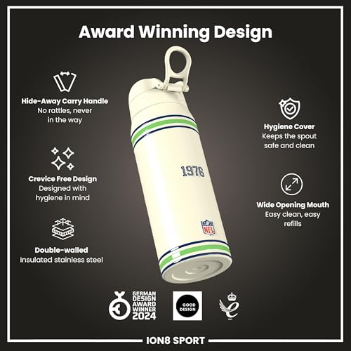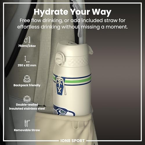 NFL x ION8 Insulated Steel Water Bottle, NFL Seahawks, 750ml (24oz)