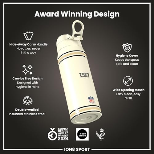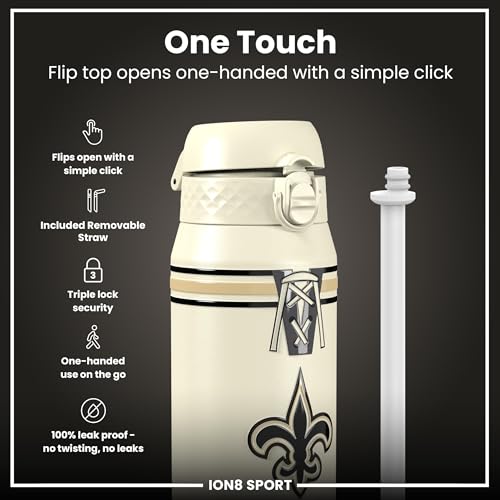 NFL x ION8 Insulated Steel Water Bottle, NFL Saints, 750ml (24oz)