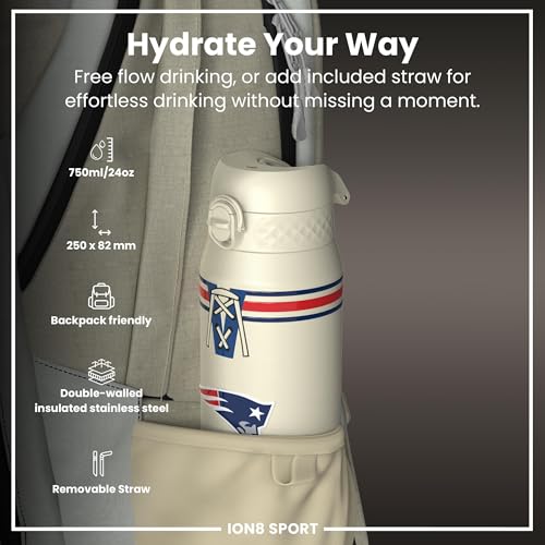 NFL x ION8 Insulated Steel Water Bottle, NFL Patriots, 750ml (24oz)