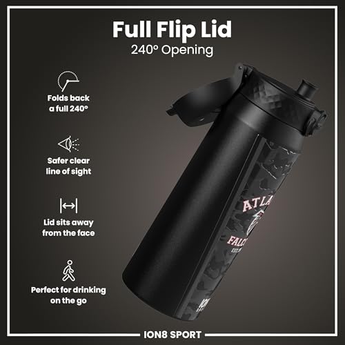 Ion8 NFL Atlanta Falcons Sports Thermal Water Bottle with Removable Straw, 750ml/24oz, Leak Proof Insulated Drinking Bottle, Easy to Open, Secure Lock, Dishwasher Safe, Flip Cover, Metal Water Bottle