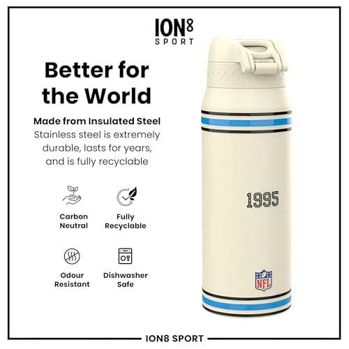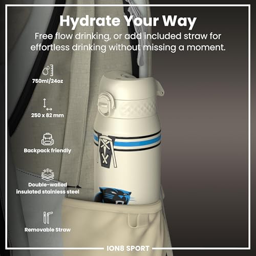 NFL x ION8 Insulated Steel Water Bottle, NFL Panthers, 750ml (24oz)