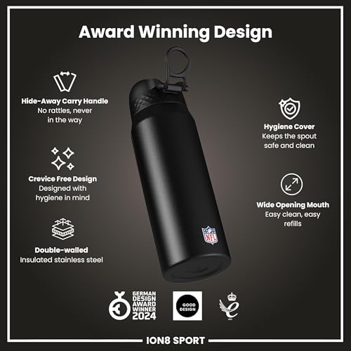 NFL x ION8 Insulated Steel Water Bottle, NFL Saints, 750ml (24oz)