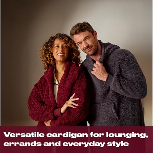 OHS Cardigan Men Women Waterfall Teddy Fleece Long Sleeve Open Front Wrap Style Cardigan Sweater with Pockets Lightweight Ultra Soft Warm Cardigan Casual Wear & Lounging, Black-S/M