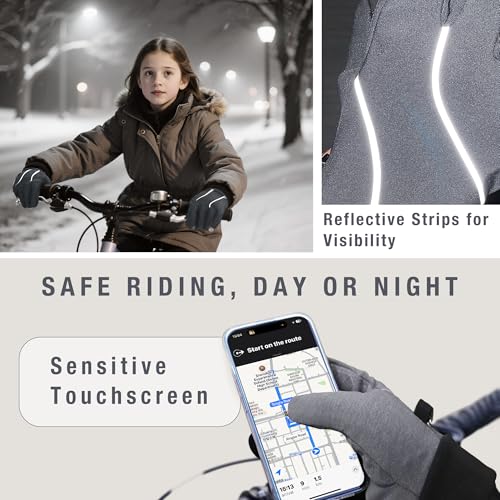 Origem Kids Waterproof Thermal Gloves with 3M Thinsulate Insulation, Winter Children Gloves Touchscreen Anti-Slip Windproof for Cycling Running Football Ski Sports Bike, Boys Girls