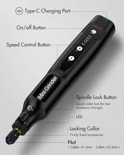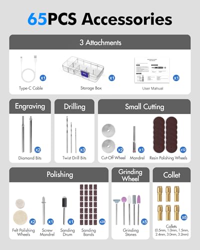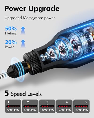 Cordless Mini Rotary Tool Set - 64Pcs Accessories 5 Speed 5000-18000rpm Multi-Purpose Mini Electric Grinder Kit 3.7V USB Rechargeable with Light for Engraving Grinding Polishing Cutting Sanding DIY