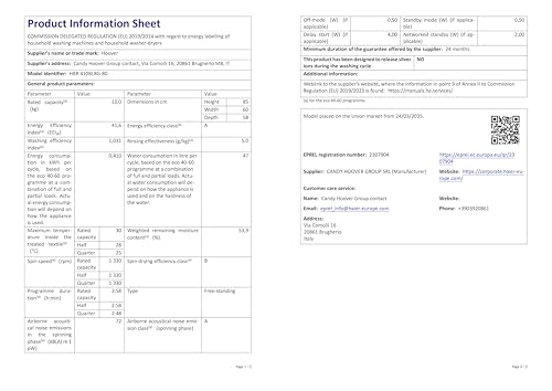 HOOVER Pro Wash Series 3 Washing Machine, 10kg, 1400 rpm, A-20 percent Energy Class, 16 Programmes, XL Soft Drum, WIFI Connected, Graphite-Black Door, 55x60x85 cm -HBR 410BL8G-80