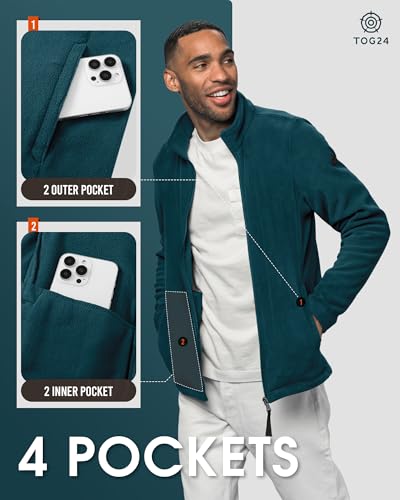 TOG24 Revive Mens Fleece Jacket Outdoor Microfleece Jackets with Full-Zip Lightweight & Warm, Anti-Pill Fabric for Hiking Trekking Camping Sport Dark Turquoise XXL