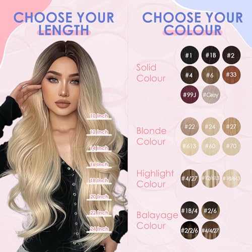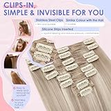 Elailite Clip in Hair Extensions Real Human Hair Double Weft Thick Remy Natural Hair Blonde - 8 Pieces Full Head Straight - #22B/613 Champagne Blonde Mix Bleach Blonde - 16 Inch (130 g)