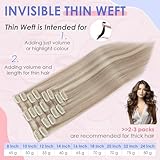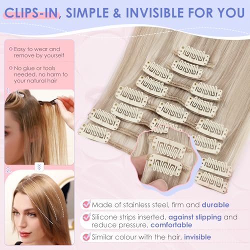 Elailite Clip in Hair Extensions Real Human Hair - 8 Pieces Thin Weft Full Head Remy Hair Straight - #22B/613 Champagne Blonde Mix Bleach Blonde - 20 Inch (70 g)