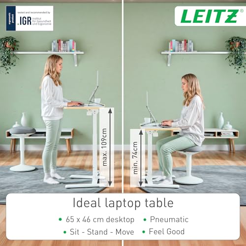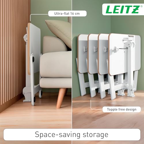 Leitz Ergo Small Foldable Sit Stand Desk - Compact Laptop Desk with Carry Handle, Lightweight and Portable, For Home Office Use, Holds up to 20kg, (Table Size - 65cm x 46cm), White, 65880001