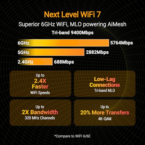 ASUS TUF Gaming BE9400 Tri Band WiFi 7 (802.11be) Extendable Gaming Router, Quad 2.5G ports, 3-step Port Forwarding, Smart Home Master, AiMesh support, and AiProtection for Network Security