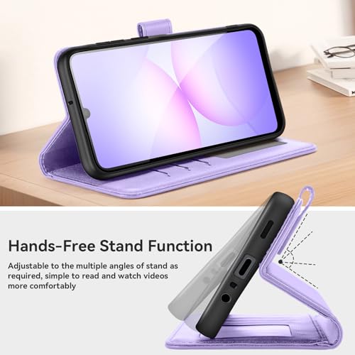ivencase Compatible with Samsung Galaxy A07 4G Case with 1 Screen Protector, [RFID Blocking] PU Leather Flip Wallet Case with Card Slots Stand Magnetic Phone Case for Samsung A07 4G - Light Purple