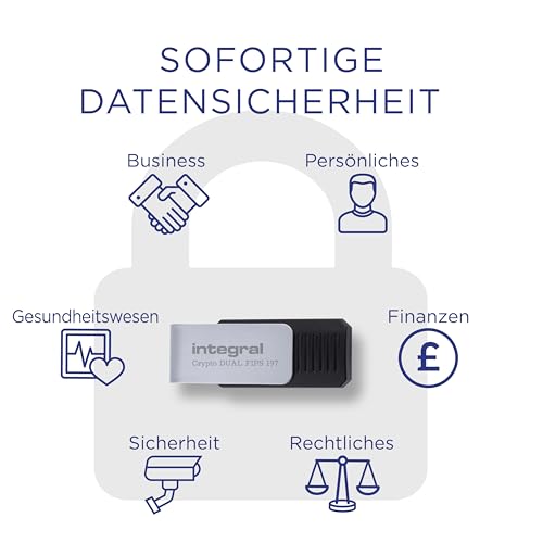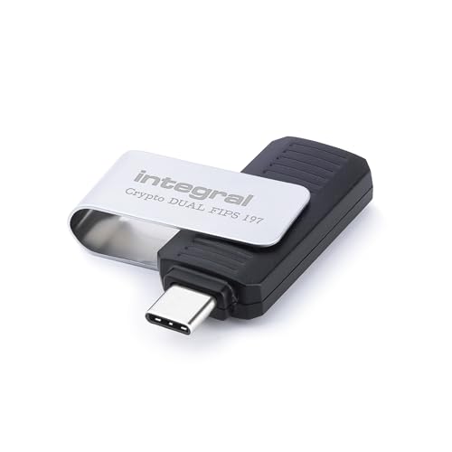 Integral 256GB Crypto-C Dual Encrypted USB Flash Memory Drive, AES-XTS 256-Bit Hardware Encrypted USB 3.2 with Secure Dual Password - Certified to FIPS 197, Compatible with Mac, MacBook, PC, laptop