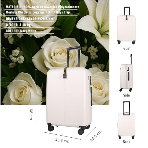 JLY Medium Suitcase Check in Expandable Hard Shell Luggage with 4 Spinner Wheels, TSA Lock, Covestro Polycarbonate, Wet/Dry Pockets, Lightweight Travel Bag – Alabaster White