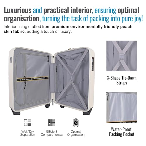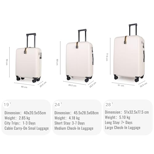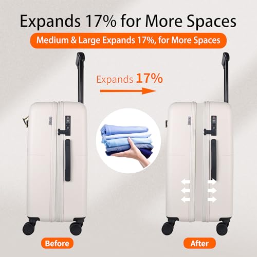 JLY Expandable Large Hard Shell Suitcase with TSA Lock & Spinner Wheels in Off-White Off-White Large