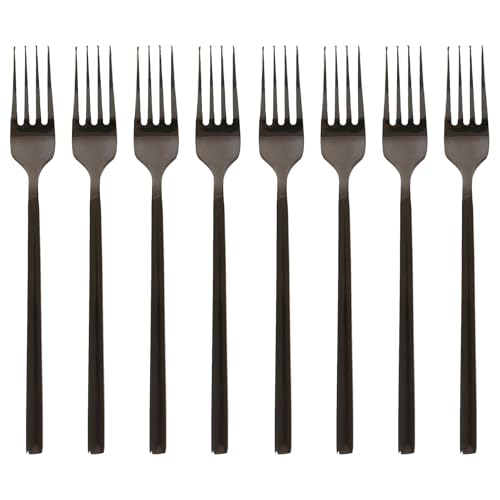 Argon Tableware 8 Stainless Steel Dinner Forks – 19.5cm Matte Black Finish Modern Cutlery Set for Dining & Entertaining – Stylish Dishwasher Safe Tableware