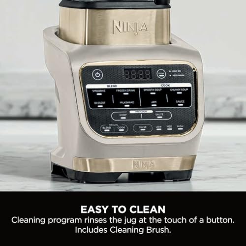 Ninja Foodi Blender & Soup Maker, 10 Auto-iQ Programs, 1.7L Glass Jug, Hot & Cold Blender, Built-In Heating Element, Tamper, Cleaning Program & Brush, 1000W, Stone Gold, HB150UKSTGD