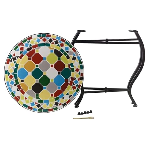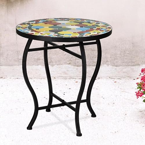 URBNLIVING 40cm Round Mosaic Bistro Side Table – Indoor/Outdoor Accent Coffee Table for Garden, Patio, Balcony or Living Room – Handcrafted Tile Top, Durable Metal Frame, Easy Flat-Pack Assembly