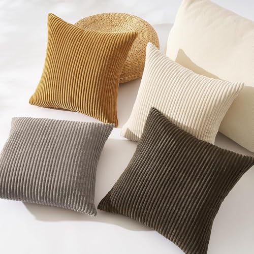 Topfinel Cushion Covers 50 x 50cm, Brown Cushion covers for Sofa Bed, Soft Pillow Case 20x20 Corduroy Scatter Decorative Cushions Pillow Cover for Livingroom Bedroom Invisible Zipper,Set of 4