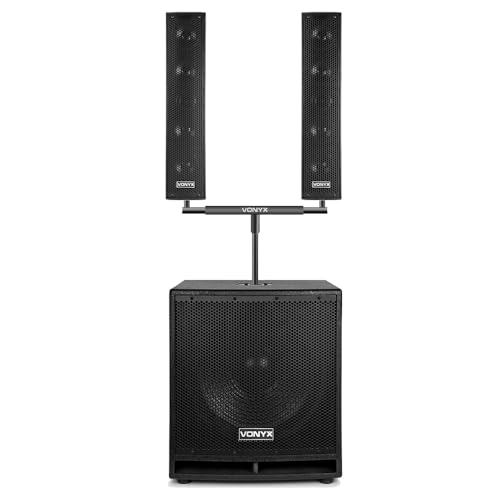 Vonyx VX880BT Portable Column Array Speaker System, Bluetooth 2.1 Active PA System with 15" Subwoofer, Dual Speakers, Adjustable Stand and Mounting Pole Brackets Ideal for DJs, Bands & Events