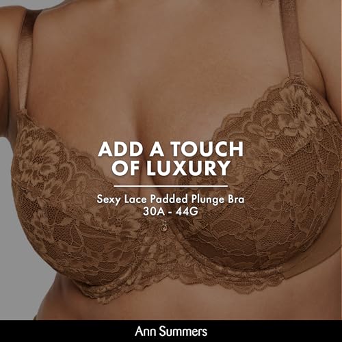 Ann Summers Sexy Lace Padded Plunge Bra, Fuller Bust DD+, A-G Cup, Curve-Enhancing Womens Underwear with Padded Cups & Underwire, Removable Mini Pads for Smaller Sizes, Adjustable Straps Light Brown