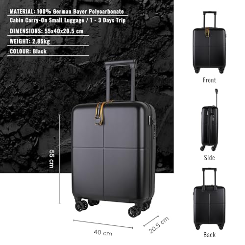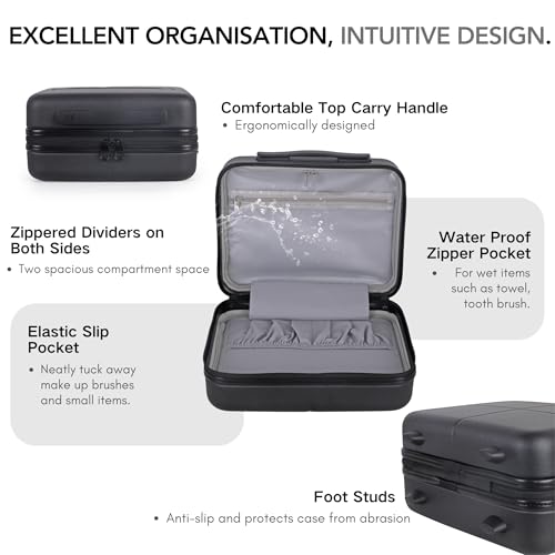 JLY Premium Makeup Travel Case + Small Cabin Suitcase 2 Pcs Set, 100% German Covestro Polycarbonate, Excellent Organisation & Wet/Dry Separation, Cosmetic Organiser & 4 Wheel Hand Luggage - Black
