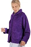 Camille Womens Supersoft Fleece Bed Jacket | Luxury Collared Warm Sleep Coat | Button Up & Long Sleeved | Warm & Cosy All Night Long | Autumn or Winter Wear Over Pyjama Top | Diamond Purple 18-20