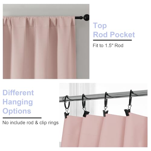 Simplebrand Ava Blush Blackout Curtains for Bedroom 96 Inches Long 2 Panels, Solid Thermal Insulated, Energy Saving Nursery Window Treatment Curtains Blackout Drapes, W50 x L96 Inch, Blush