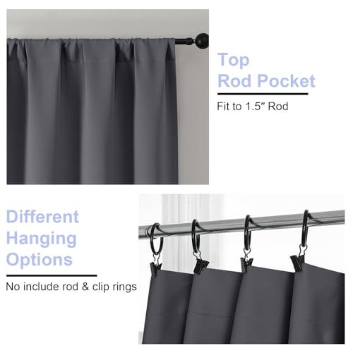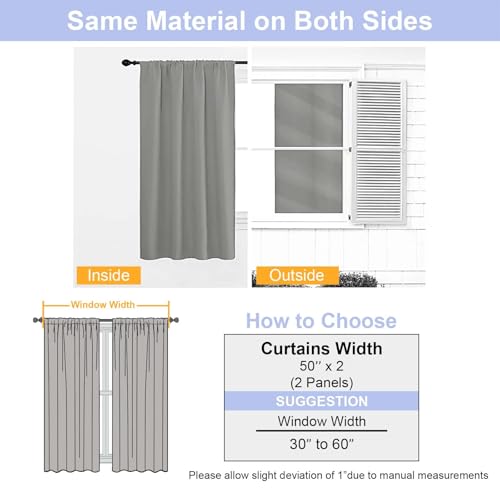 Simplebrand Ava Grey Blackout Curtains for Bedroom 90 Inches Long 2 Panels Set, Solid Privacy Energy Saving Living Room Window Treatment Curtains Blackout Drapes, W50 x L90 Inch, Grey