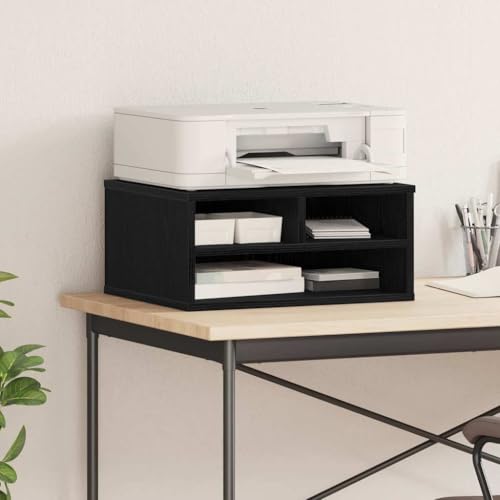 vidaXL Printer Stand Black oak 49 x 40 x 22.5 cm Engineered wood, Aesthetic Office Stand, Rustic Printer Holder, Rectangular Desktop, Workspace Organizer Supplies
