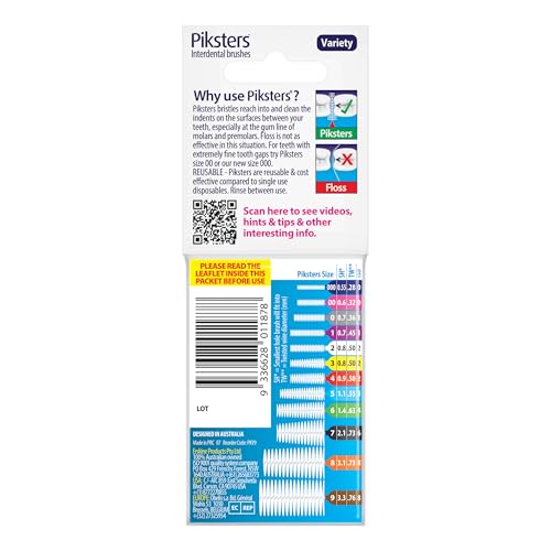 Piksters Interdental Brushes, Variety Pack Size 000-6, Interdental Tooth Brush for Extremely Tight Gaps to Large Teeth Gaps, Gum Soft Bristles for Plaque Removal, Safe for Braces (9 pk)