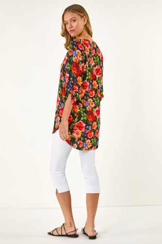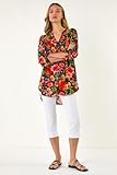 Roman Womens Floral Longline Button Top in Red Size: 10 Red 10